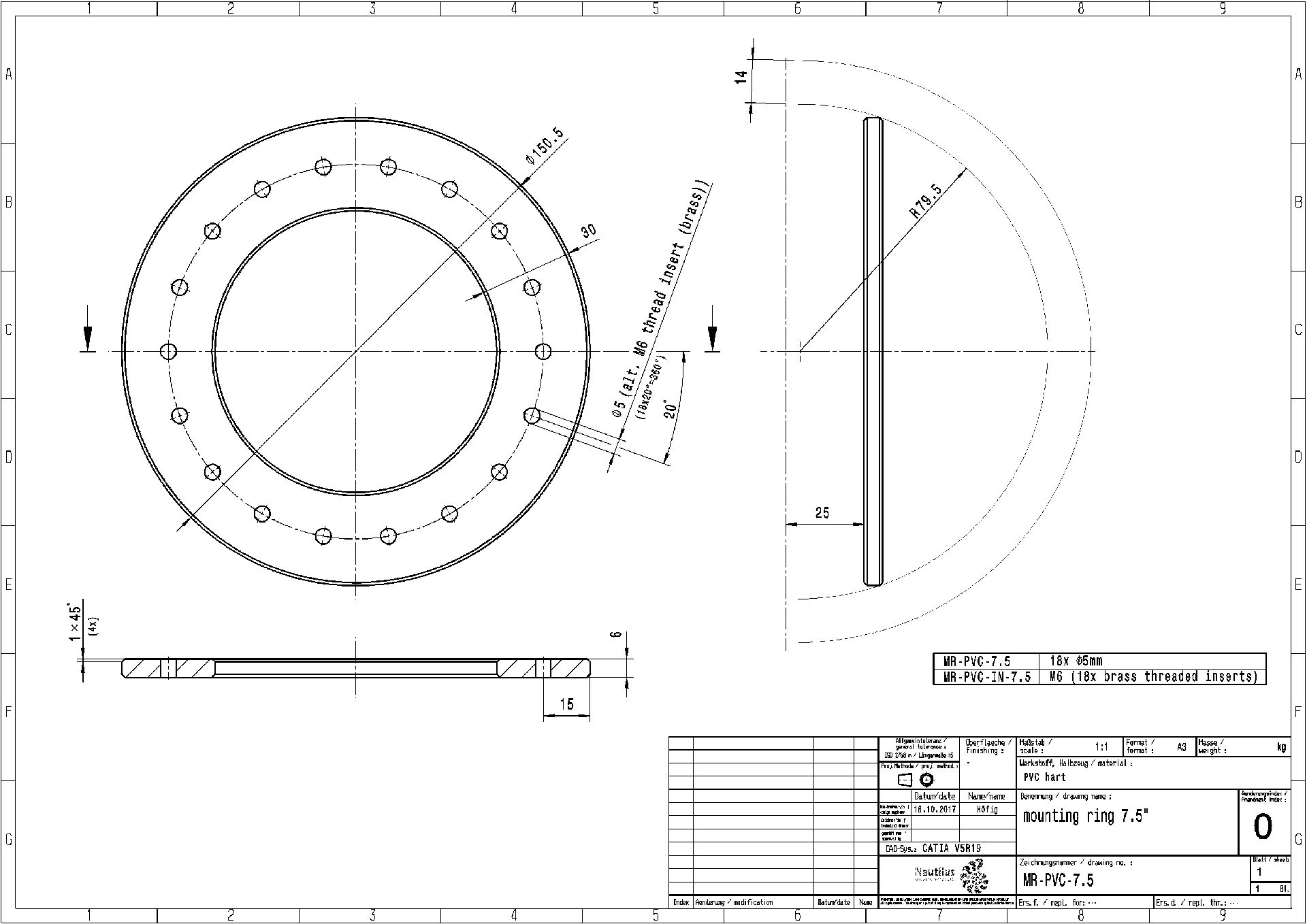 | Mounting rings with or w/o threated inserts which supposed to be fixed (bonded) approx. 25mm below the rim of a corresponding hemisphere. Download Drawing: | |