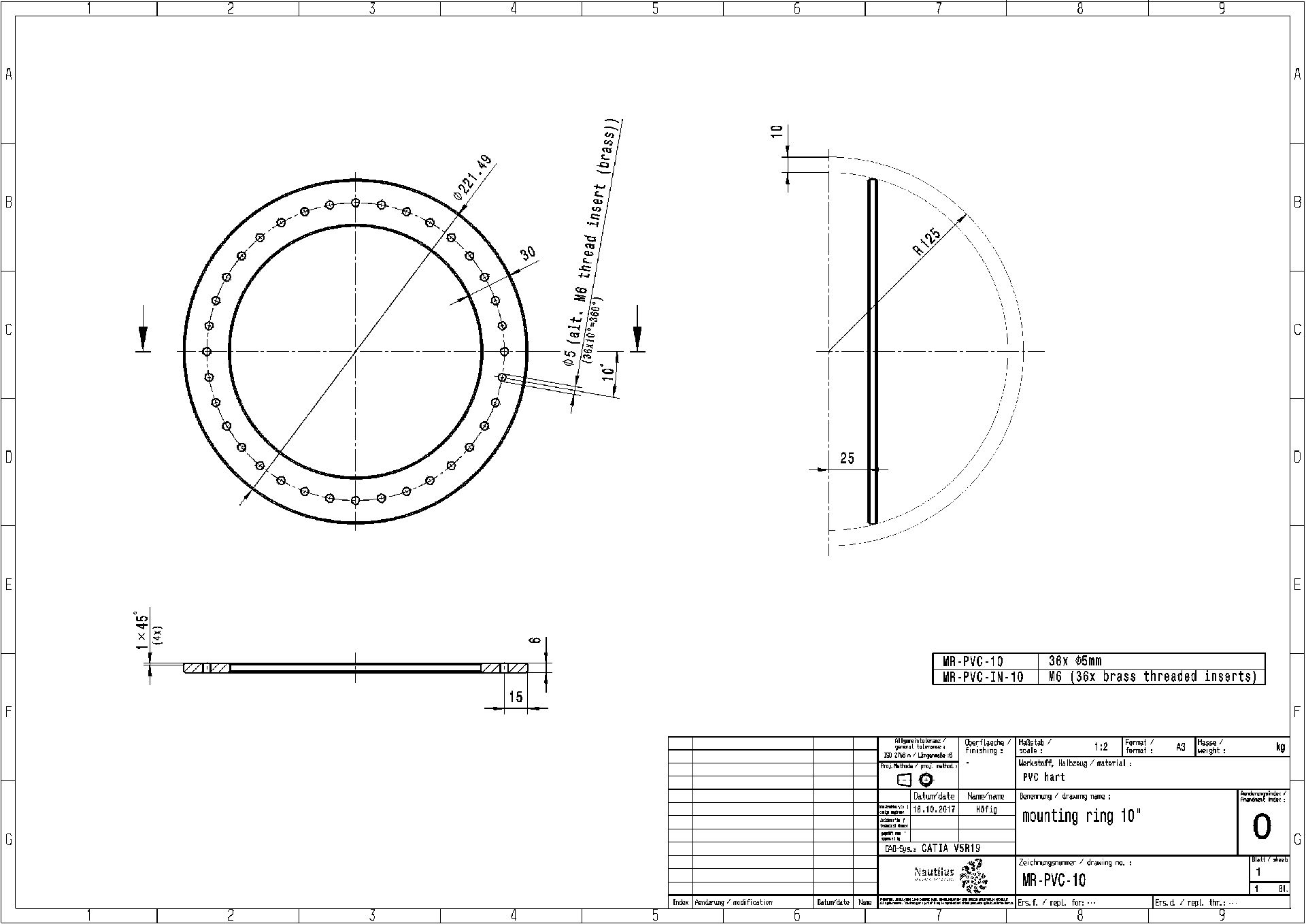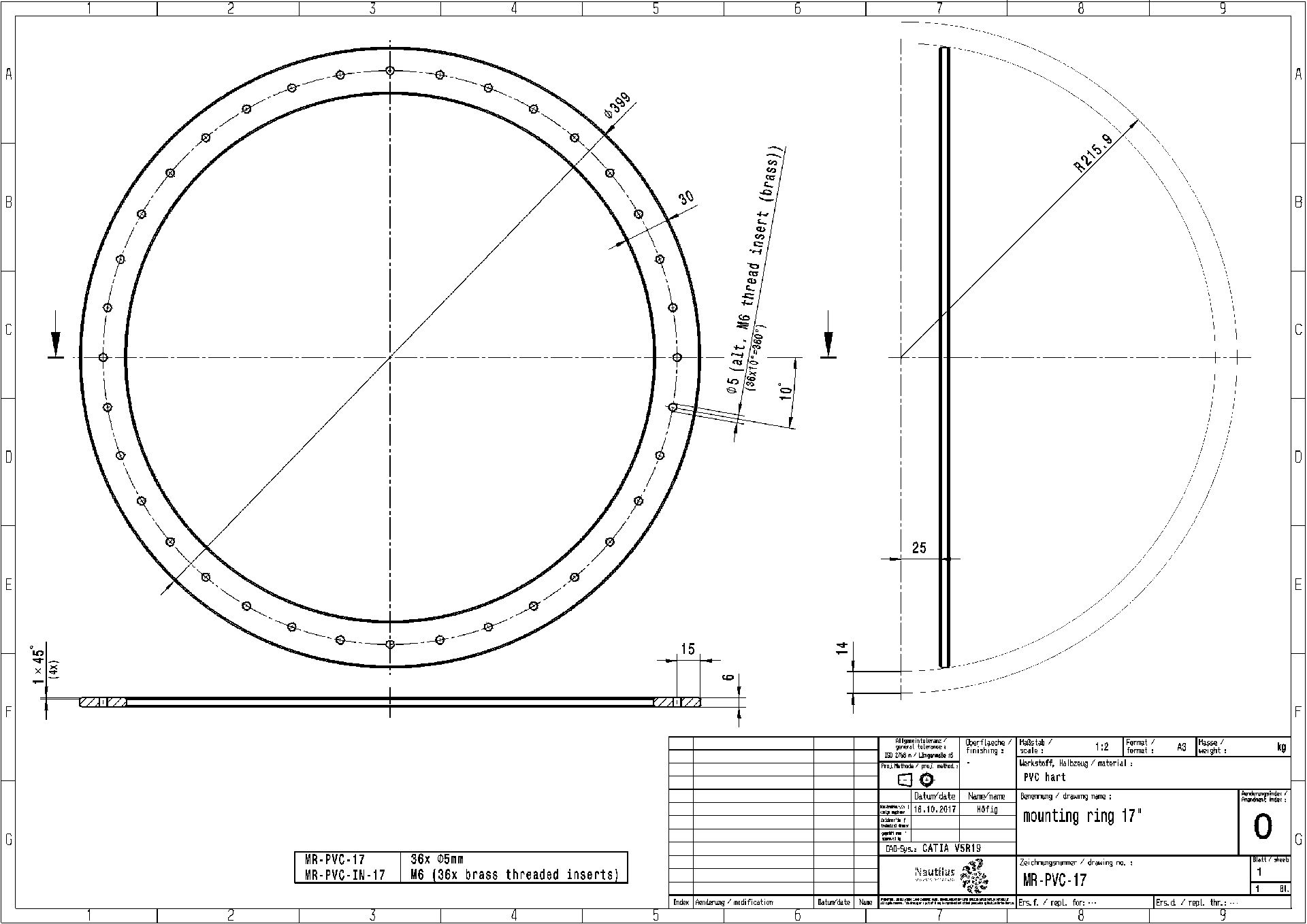 | Mounting rings with or w/o threated inserts which supposed to be fixed (bonded) approx. 25mm below the rim of a corresponding hemisphere. Download Drawing: | |