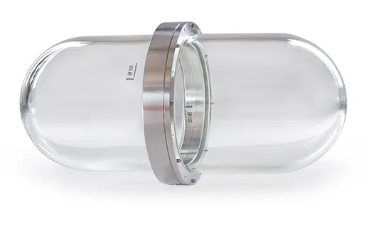 VITROVEX glass spheres can be provided with mounted flanges made of titanium, stainless steel and plastic as an alternative solution to open and close spheres as easy as accustomed non-glass enclosures.